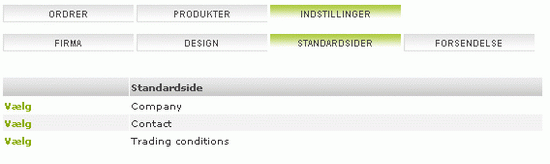 Under fanen "Standardsider" finder du standardsiderne for din webshop.
